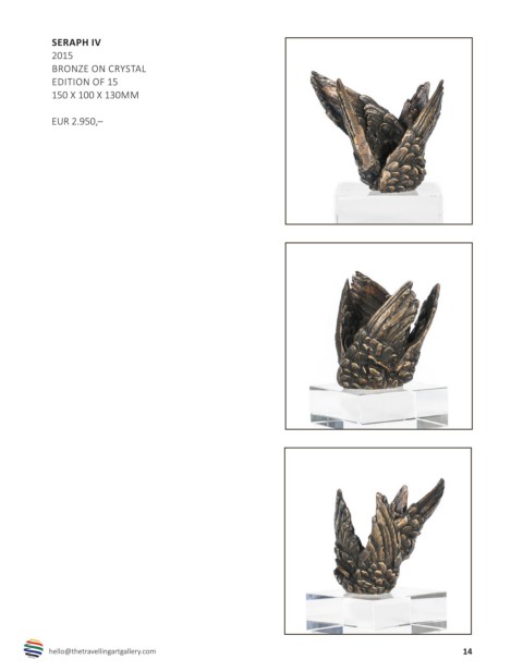 SERAPH IV 2015 BRONZE ON CRYSTAL EDITION OF 15 150 X 100 X 130MM EUR 2.950,– hello@thetravellingartgallery.com 14 The Travelling Art Gallery