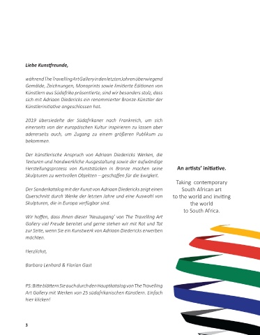 Der Sonderkatalog mit der Kunst von Adriaan Diedericks zeigt einen South African art