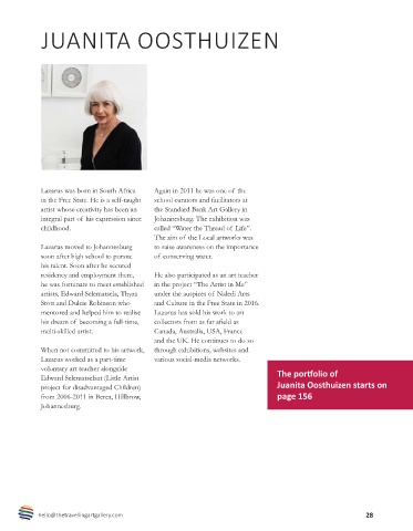 Lazarus moved to Johannesburg to raise awareness on the importance